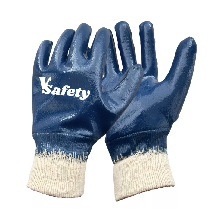 Fully Nitirle coated safety work gloves with Knit wirst